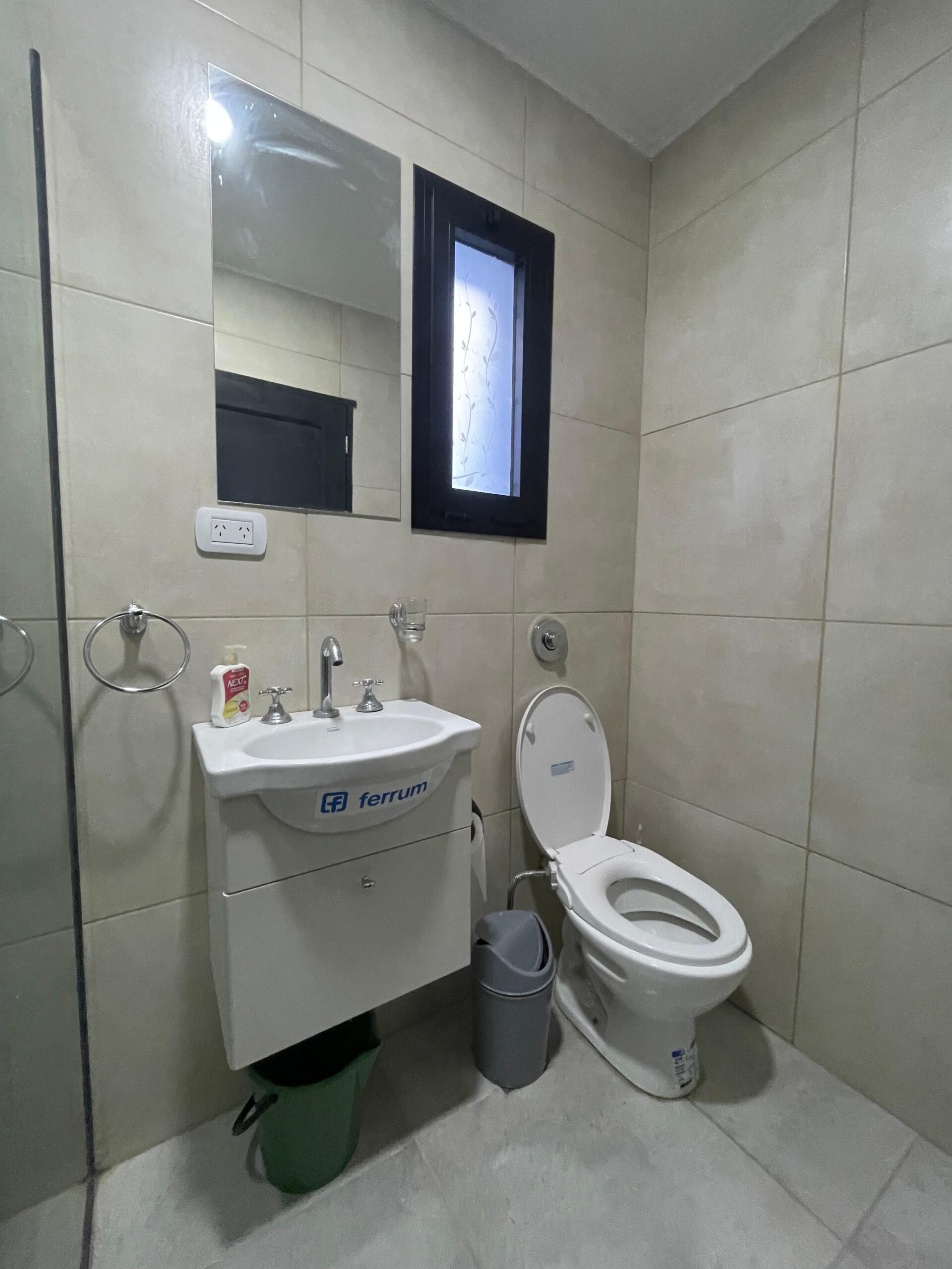 - Baño con inodoro y bidet incorporado Ferrum, válvula descarga Piazza, grifería lavatorio y ducha Ferrum, mampara de blindex.